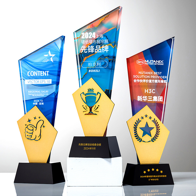 カラフルなカラープリントブレードトロフィー記念コンペティションハイエンド年次総会優秀従業員協力者賞無料デザイン