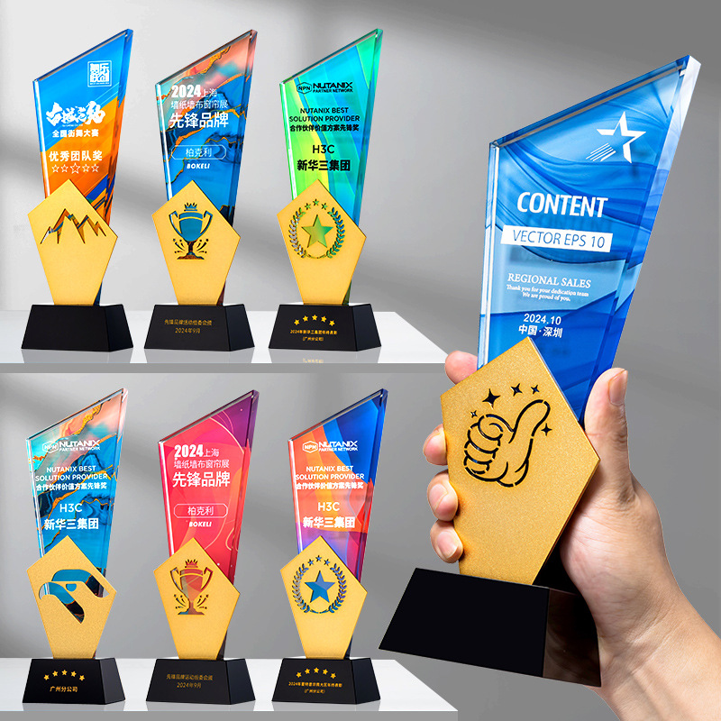 カラフルなクリスタルトロフィー金属スプライシングカスタマイズされた優秀な従業員賞年次総会名誉記念品トロフィー
