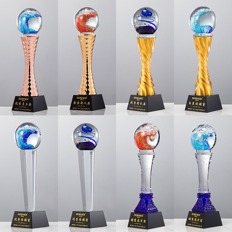 変色水晶トロフィーカスタム新高級栄誉試合授賞販売量優秀社員チームトロフィー設計