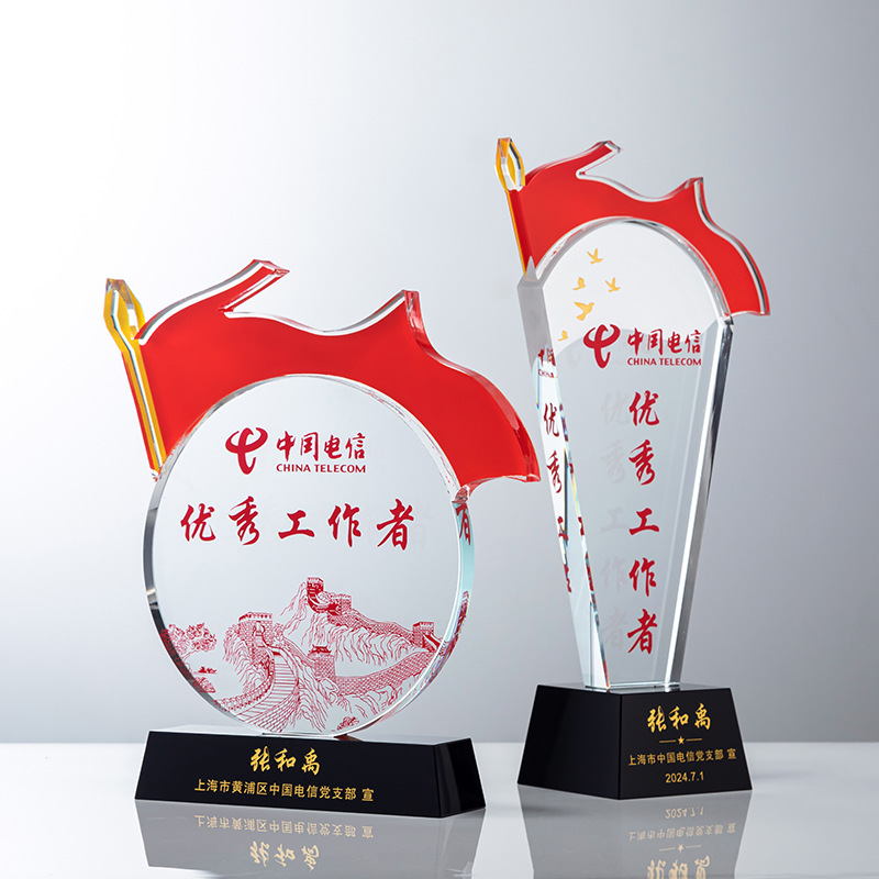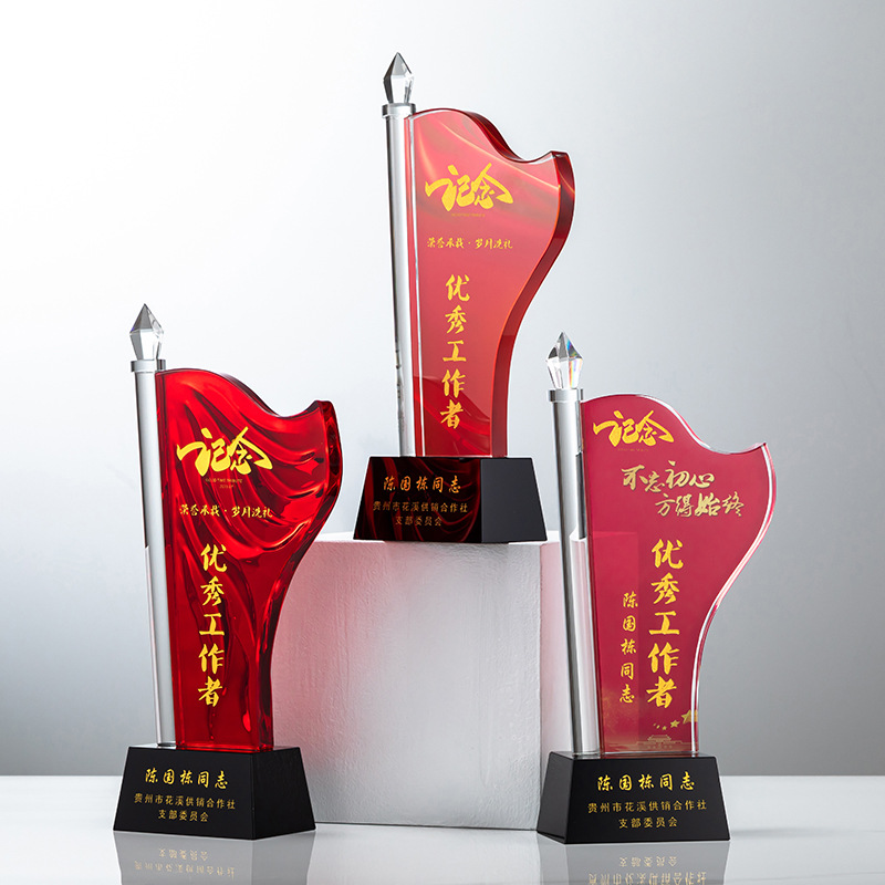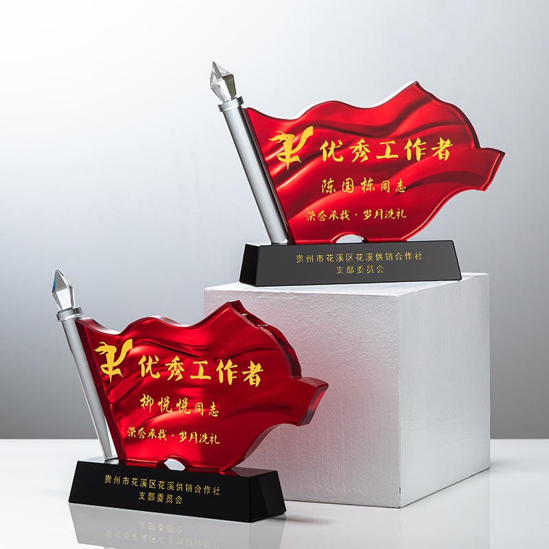 赤い旗クリスタルトロフィーブランドカスタマイズされた7月1日党員表彰優秀労働者優先従軍記念品