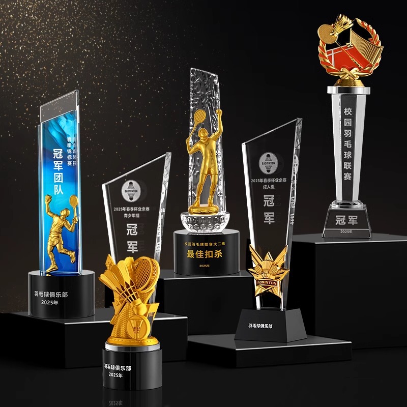 バドミントンテニス金属水晶樹脂金メッキトロフィーカスタムオーダーメード金銀銅運動会スポーツ試合