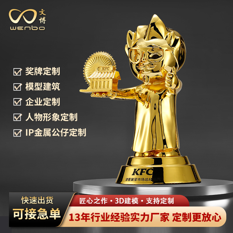 金属製のトロフィーはカスタマイズされたKFCのファッショナブルな形状と細かい職人技で、ビジネスギフトや職人技の装飾品として適しています。