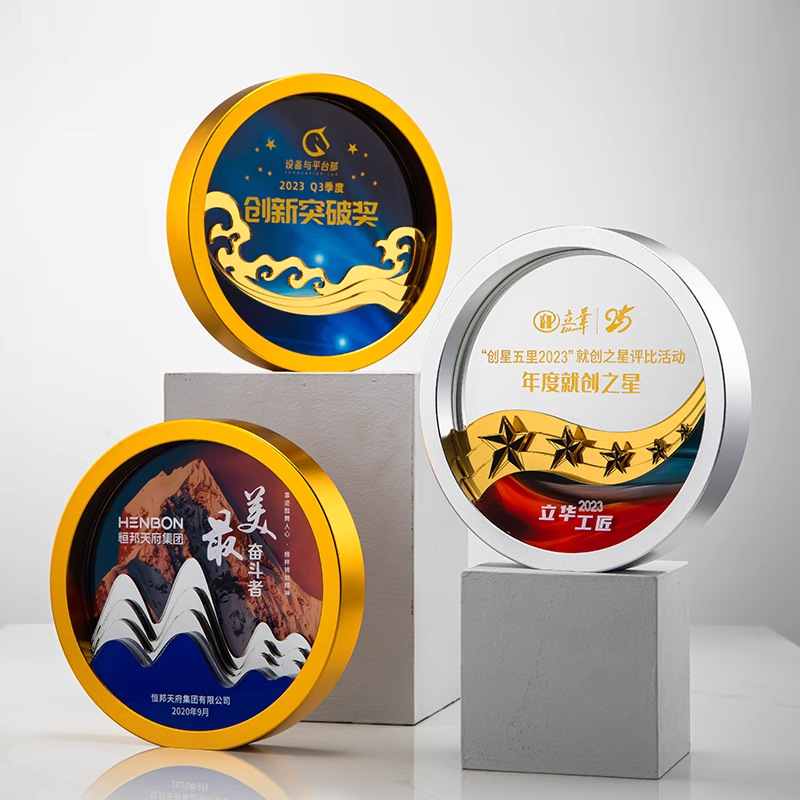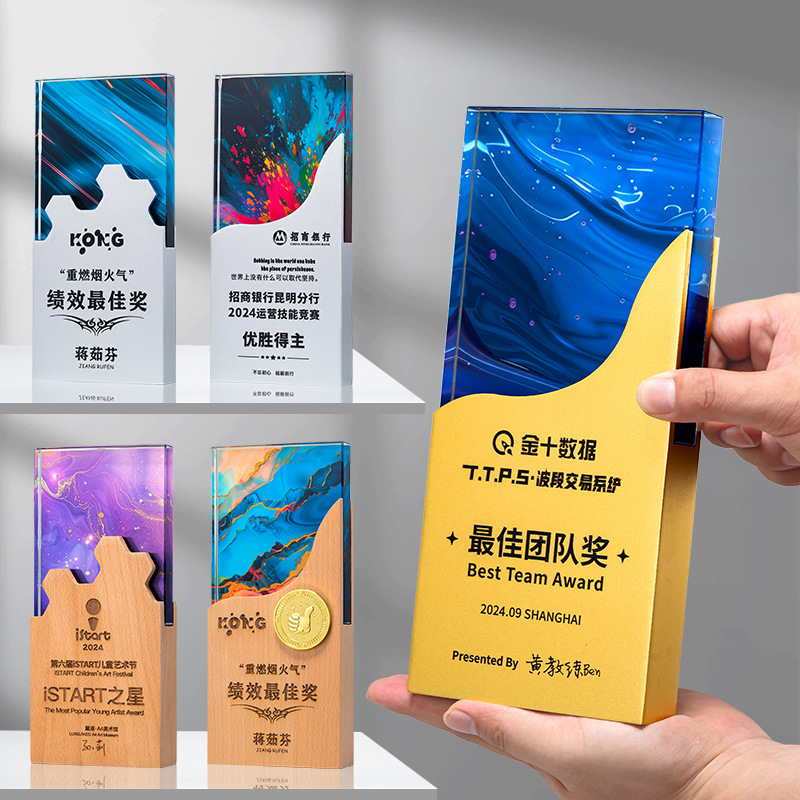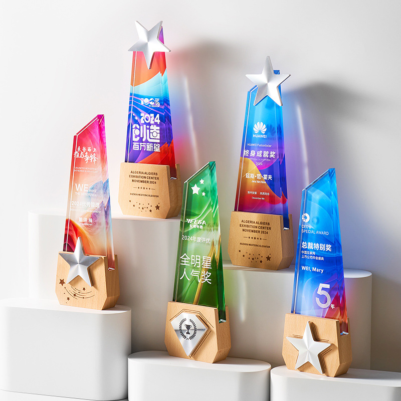 工場クリエイティブクリスタルトロフィー優秀従業員メダルプラークカスタムカラフルな無垢材トロフィーお土産カスタムメイド