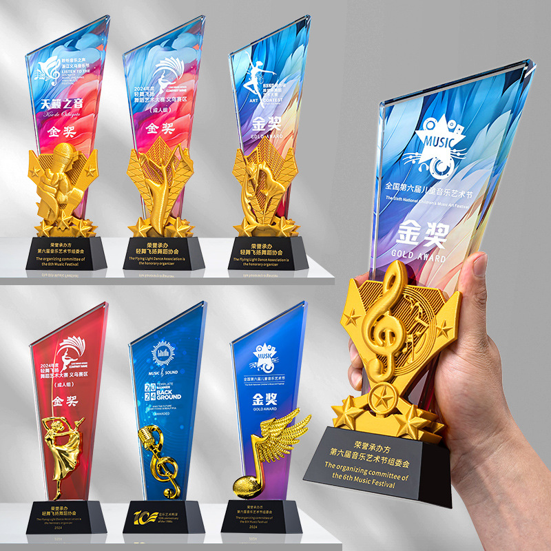 水晶のトロフィーの新型の音楽のダンスの学校の十佳の歌手のダンスの試合の授賞の樹脂の金属のメダル