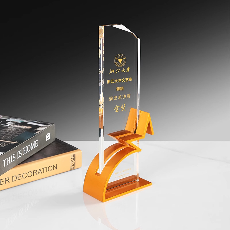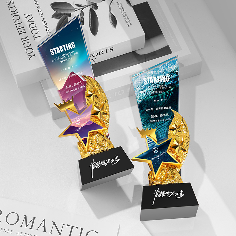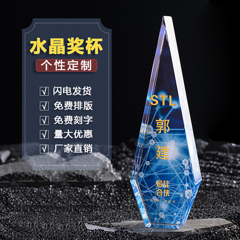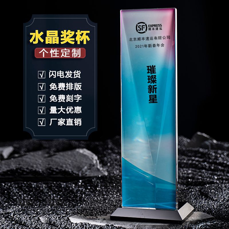 金属彩印水晶奖杯创意高档大气优秀员工年会颁奖纪念品摆件爆款