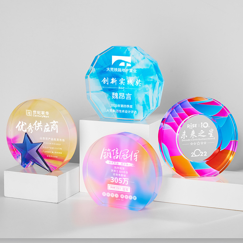 ハイエンドのクリエイティブなカラフルなクリスタルトロフィー、カスタマイズされたカラー印刷された優秀な従業員記念賞名誉コンペティションカップ