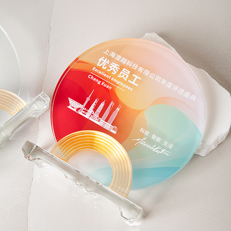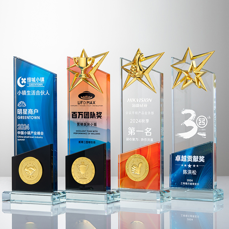 ハイエンドのクリエイティブクリスタルトロフィー会社優秀従業員年次総会賞トロフィーカラー印刷メダル彫刻ガラス記念