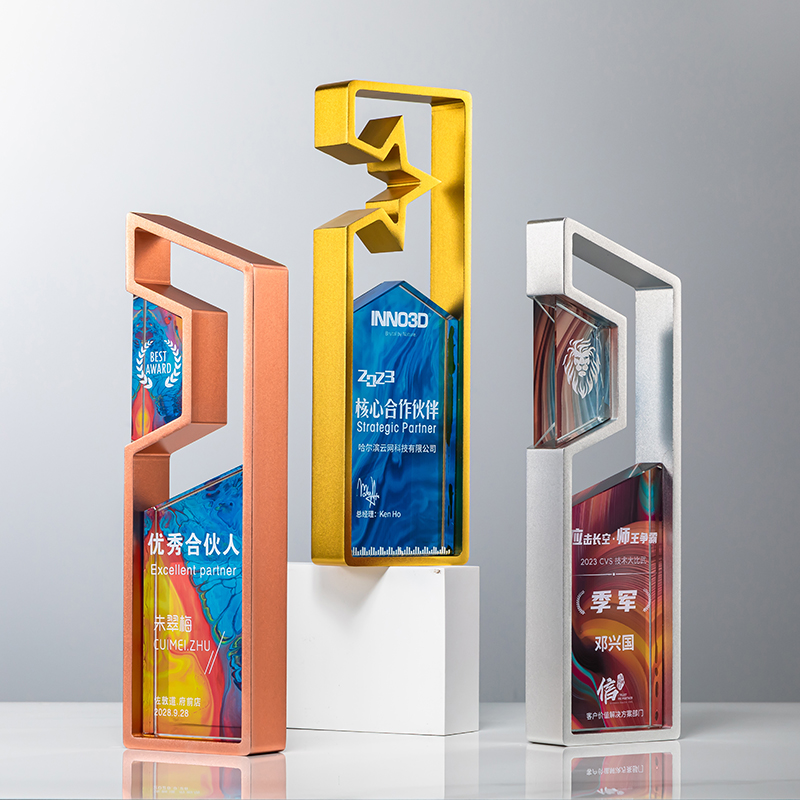 金属彩印水晶奖杯创意高档大气优秀员工年会颁奖纪念品摆件爆款