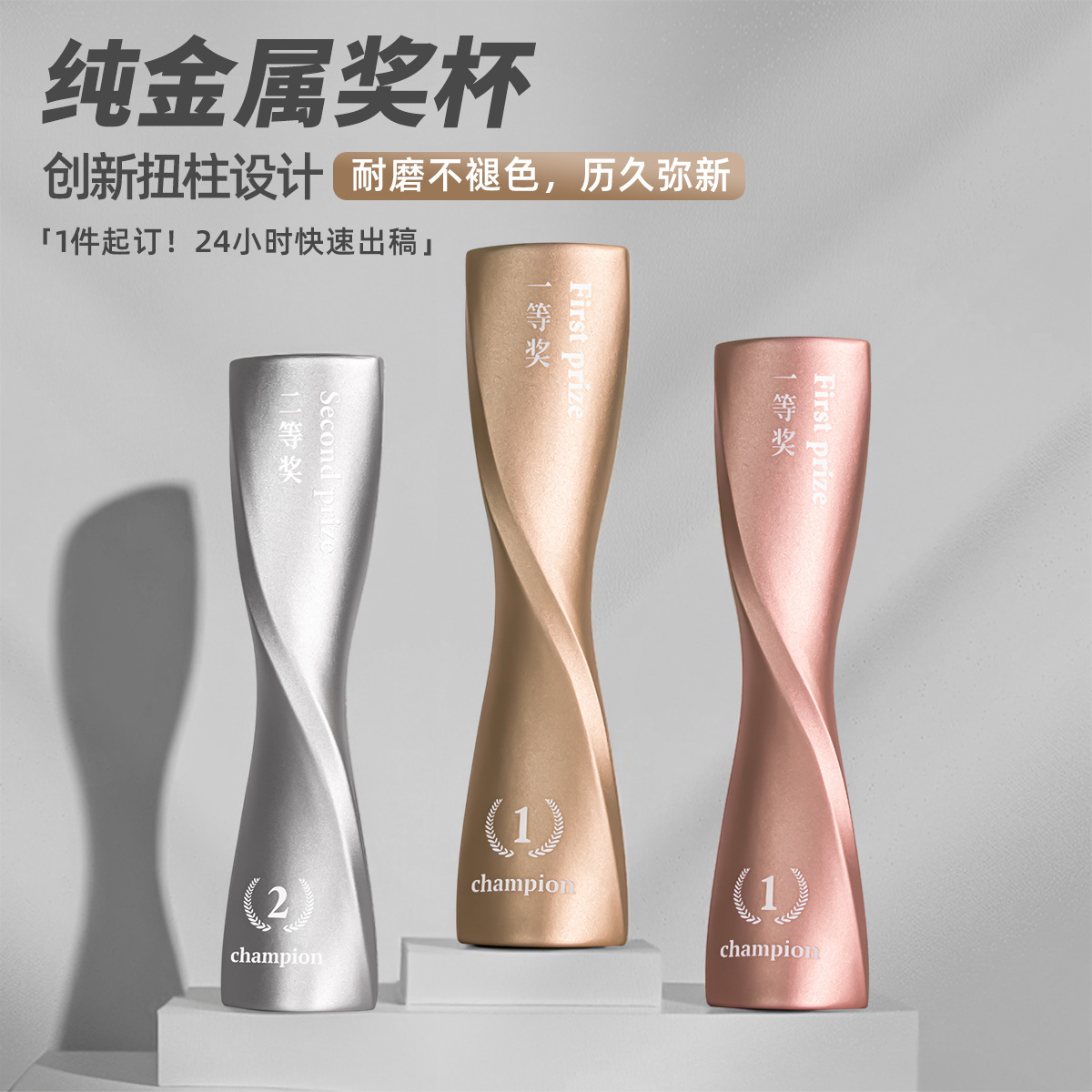 純金属のトロフィーは色褪せません。内容は自由に設定できます。学校、ショートビデオ、企業の周年記念などに。