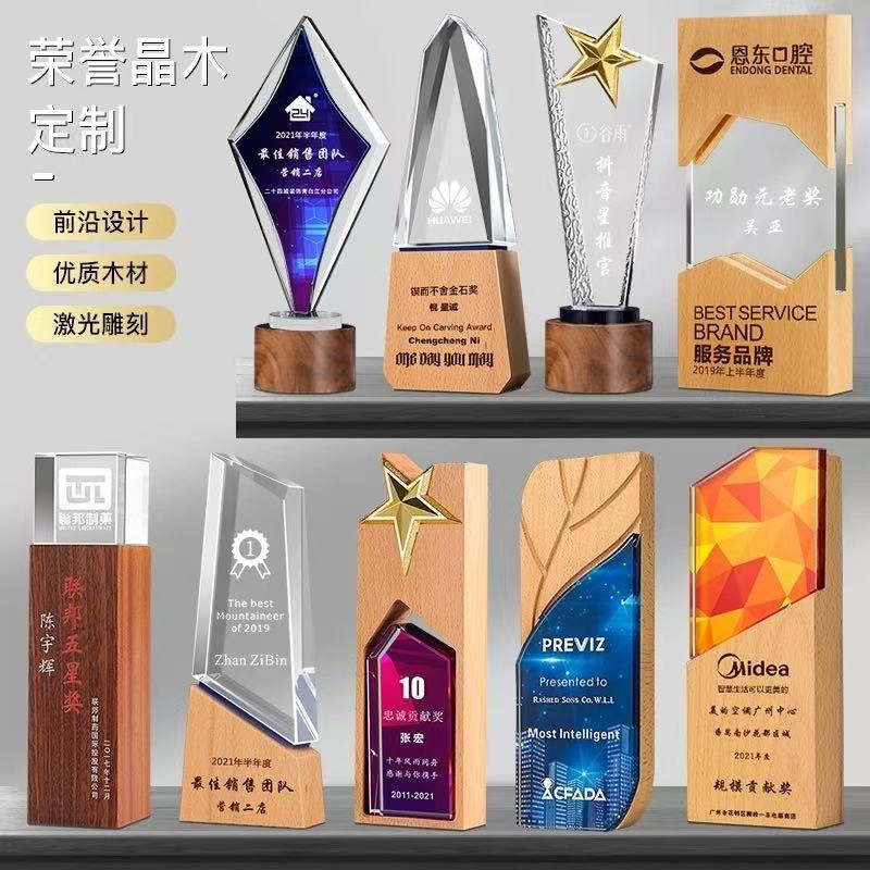 クリスタルトロフィー実木金属メダル樹脂カラー印刷優秀従業員子供ダンスクラウンマイク音楽試合