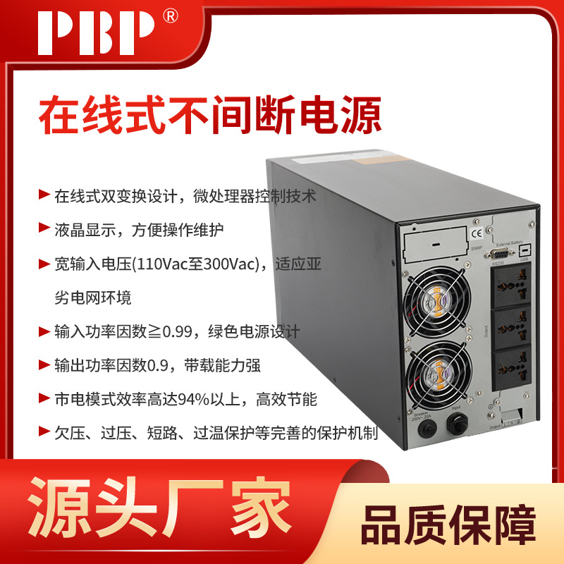 PBPオンラインUPS無停電電源装置、機室用産業用バックアップUPS電源、安定化電源、長寿命サーバー