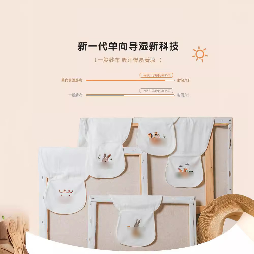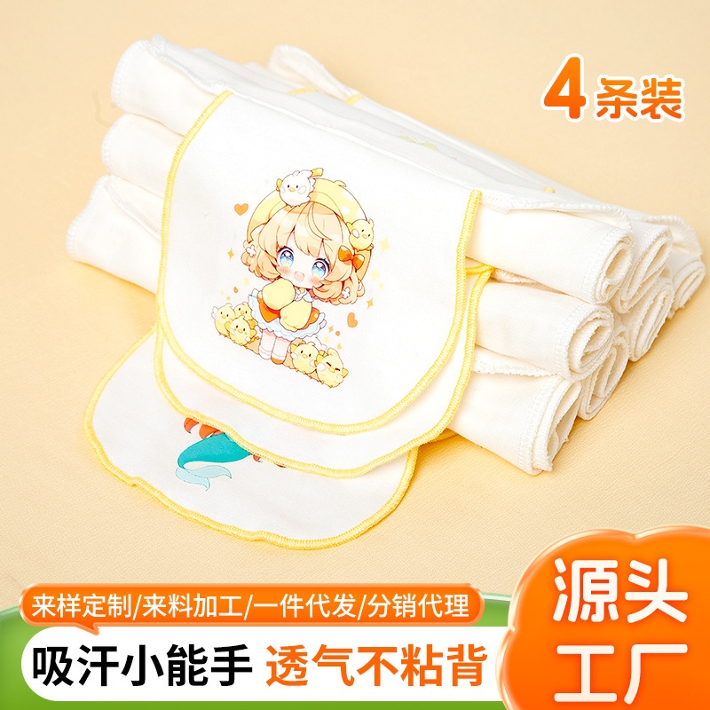 オーマン子供用汗取りタオルベビー綿汗取りタオル幼稚園綿ガーゼパッドバック4層プリント汗取りタオル