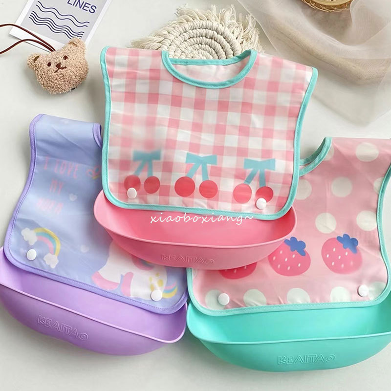 【深いポケットが漏れない】赤ちゃんが食事をしているのは、シリコンゴムの超薄型ソフト防水夏の子供が口を囲んで食事をしているポケットです