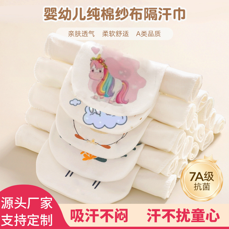 0-6歳のベビー汗取りタオル、夏用汗取りタオル、ベビー綿ガーゼ幼稚園パッド、汗取りタオル加工卸売