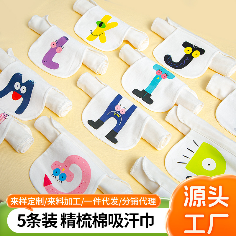 ベビー汗吸収タオル純綿幼稚園ベビーパッドスリング通気性と蒸れない漫画子供用背中汗タオル