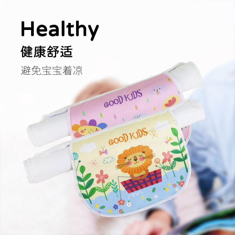 アニメプリントの赤ちゃんは汗タオルを吸って風邪をひかないようにします。