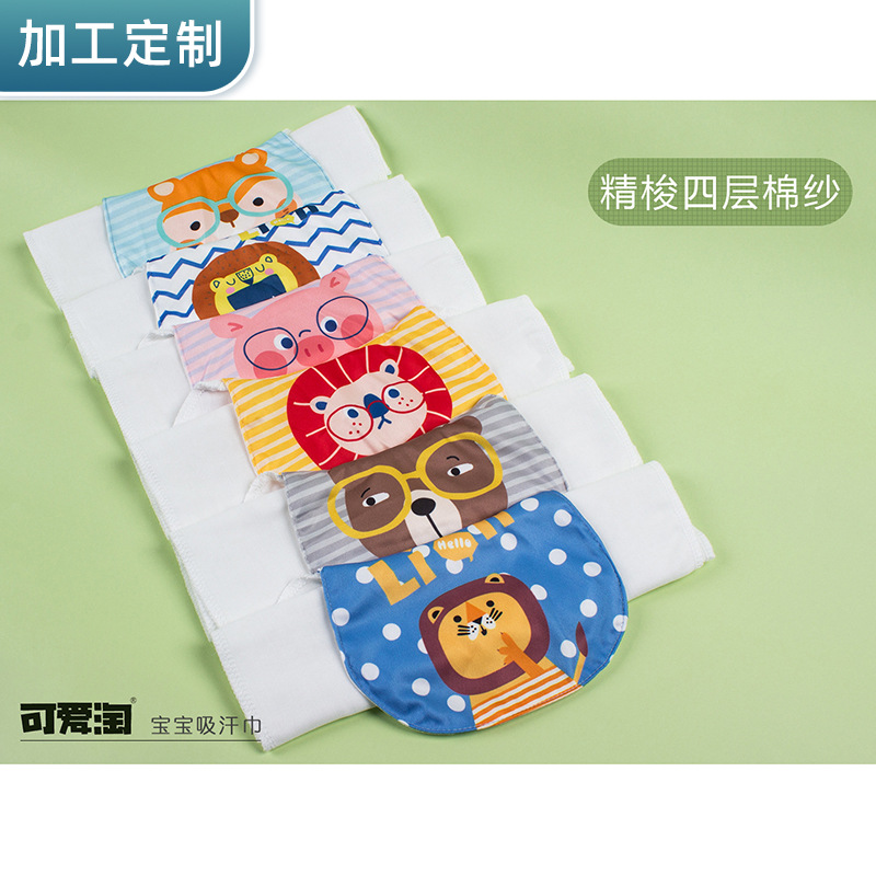 子供用汗タオル4層綿糸刺繍ガーゼ汗タオル幼稚園の赤ちゃん用バックタオルは汗タオルメーカー直販