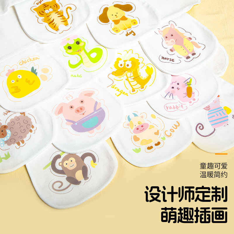 メーカー卸売りの赤ちゃんの通気性は汗タオル4本の幼稚園のバックタオルの汗タオル十二生肖綿糸で汗を吸う