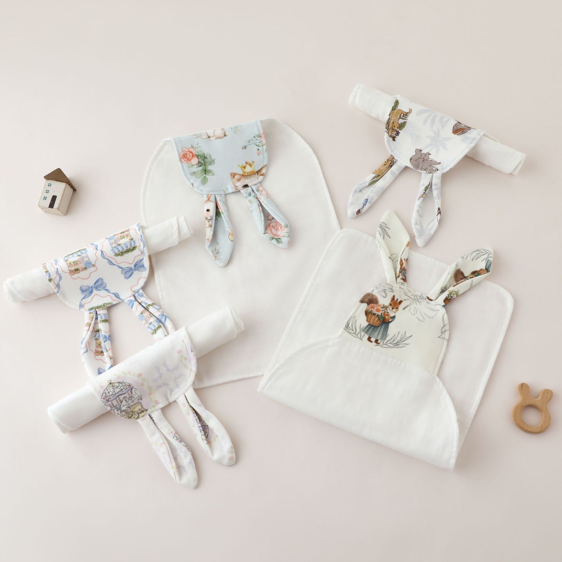 ベビークラスAガーゼ汗取りタオル、子供用幼稚園パッド、男女兼用ベビー汗取りタオル、漫画ウサギ耳スタイル