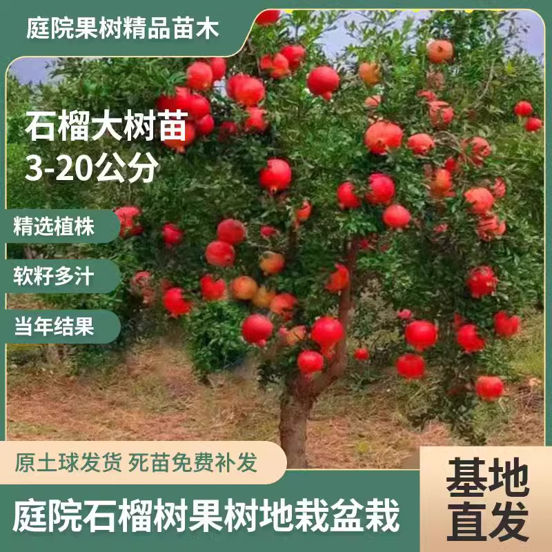 ザクロの苗木、チュニジア産ソフトシード大紅袍、種なし、南北植え、特大土鉢植え中庭果樹