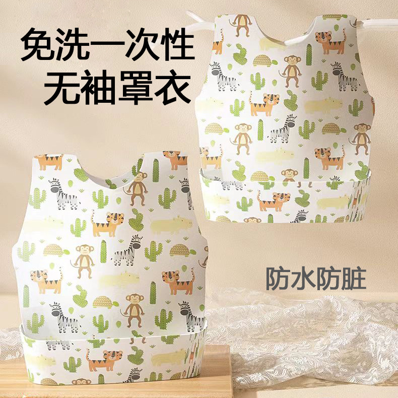 春と秋の赤ちゃんカバー子供防水汚れ防止よだれかけ男女薄い袖なしよだれカバー子供エプロン