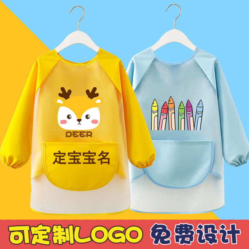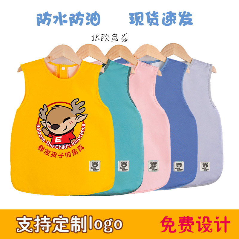 防水子供用カバー赤ちゃん汚れ防止よだれかけご飯兜絵印字ロゴ幼稚園専用美術画絵衣