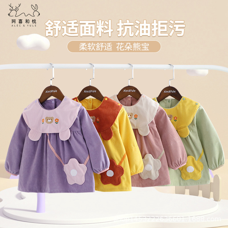 阿喜和悦秋冬女児コーデュロイ防水洋気カバー女性赤ちゃん食事汚れ防止耐磨耗保護服よだれかけ