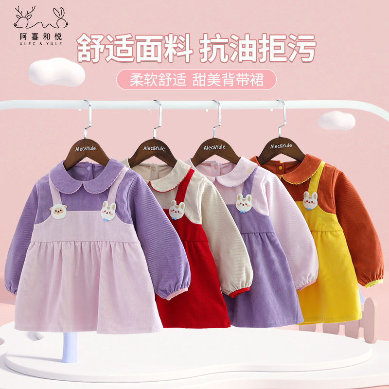 子供よだれかけ女の子ライスポケットプリンセススカートスモックベビー食事服防水防汚秋と冬のエプロンよだれかけ純綿