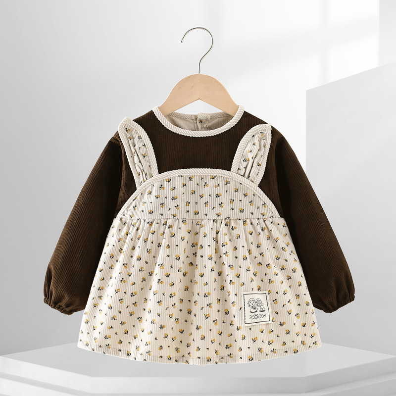 女性の赤ちゃんのカバーの服の秋冬の外は王女のスカートを着て食事をします。