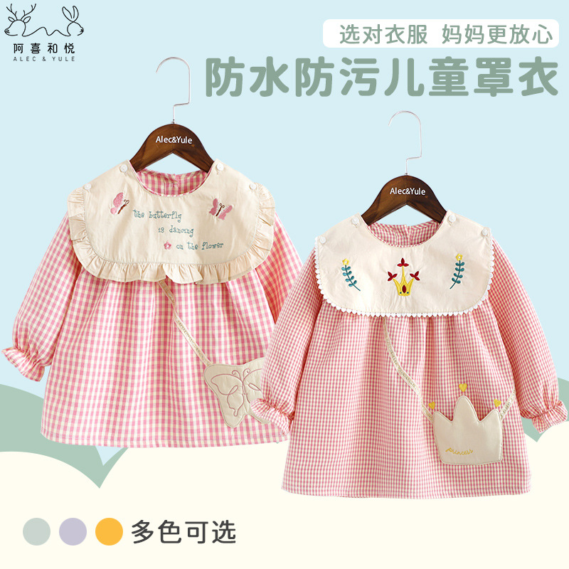 阿喜和悦秋冬女児長袖防水逆着洋気カバー服子供赤ちゃん食事防水保護服よだれかけ