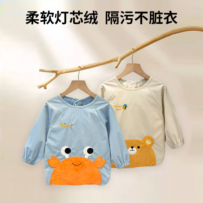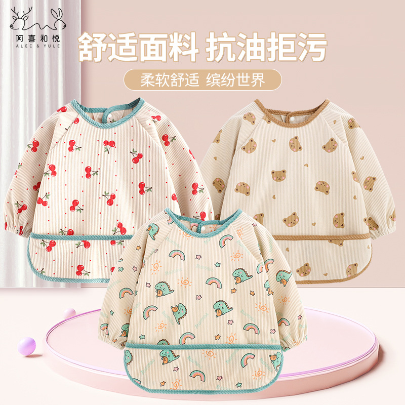 阿喜和悦秋冬コーデュロイ長袖新生児赤ちゃん食事漫画カバーよだれかけ汚れ防止耐摩耗性保護服