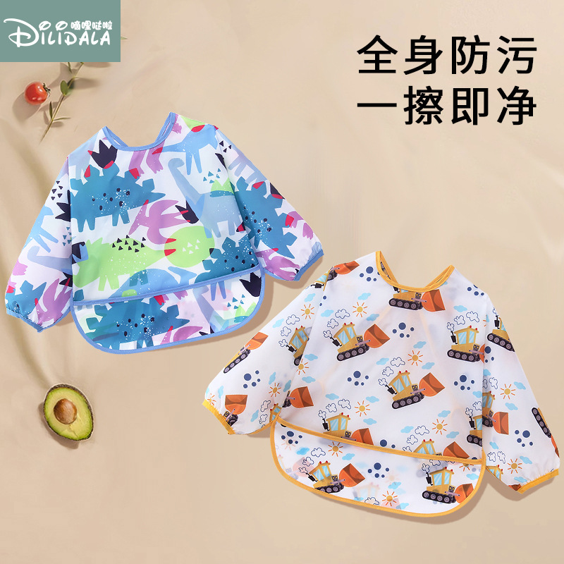 全身防水子供カバー赤ちゃん食事よだれかけ絵エプロン幼稚園子供汚れ防止服保護服