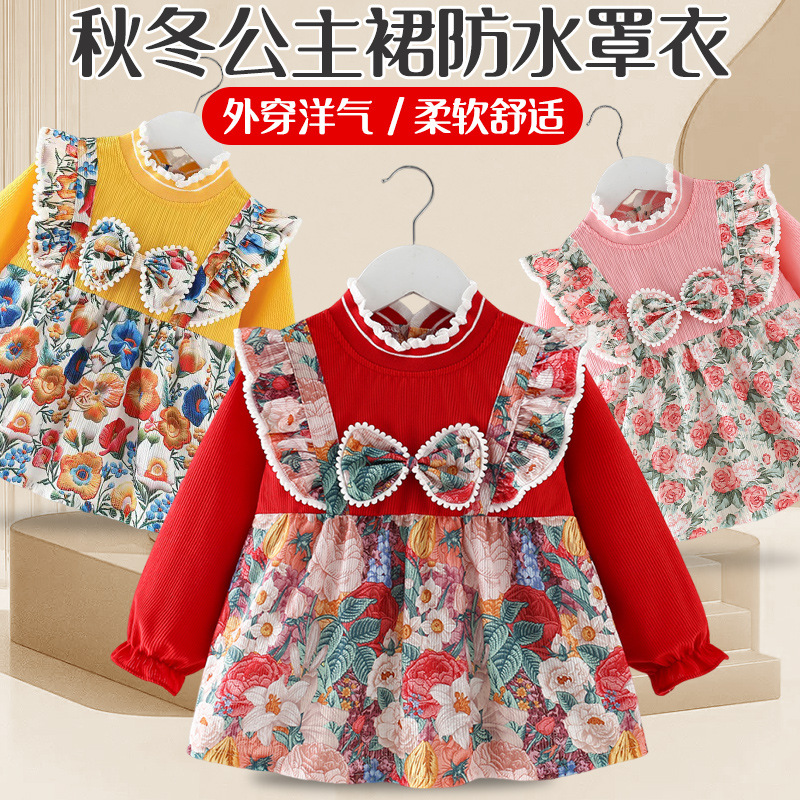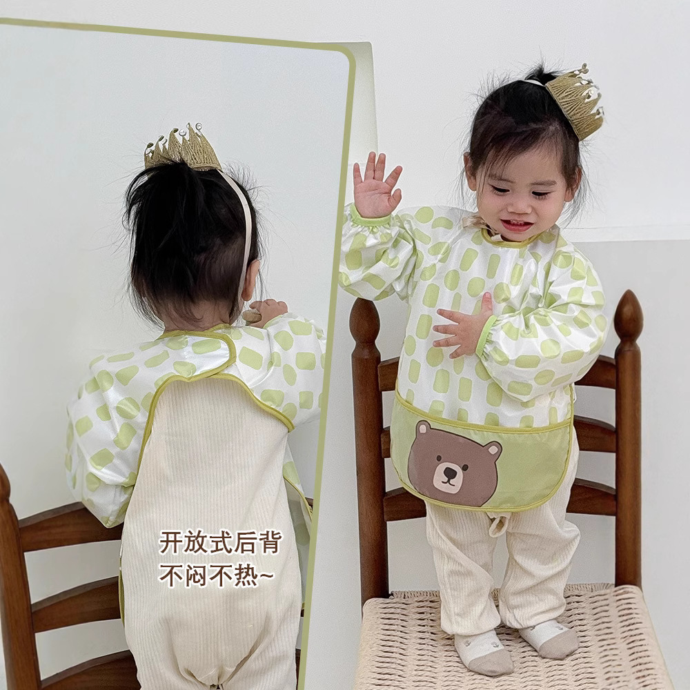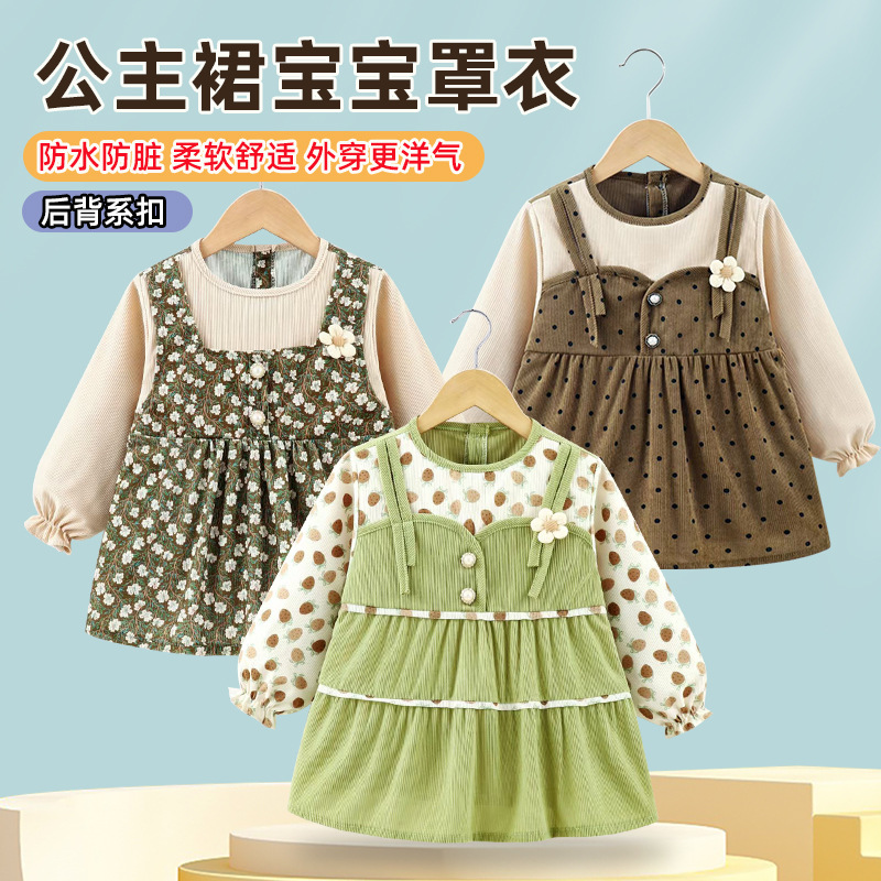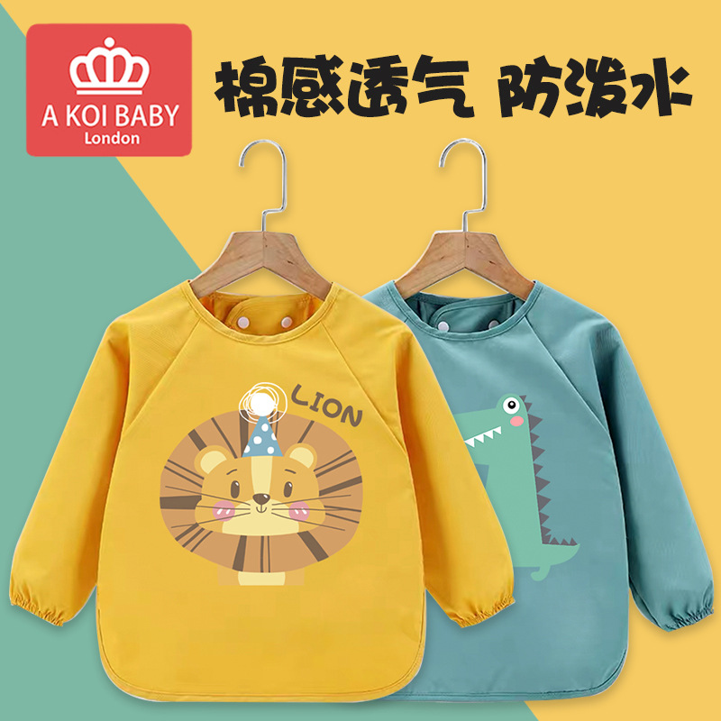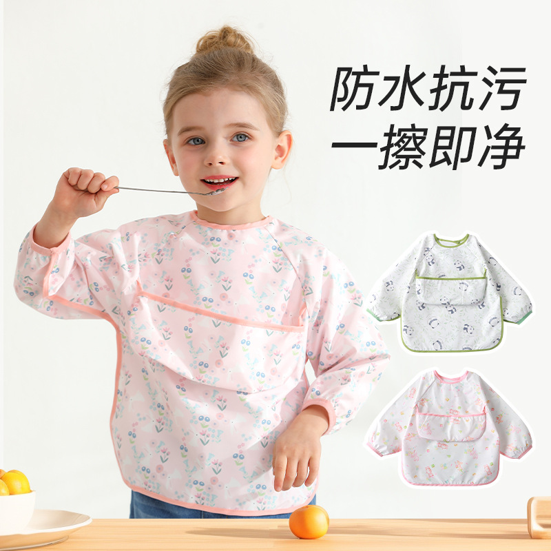 ベビーカバー秋冬防水子供エプロン汚れ防止反着長袖飯兜女の子ベビー美術画絵衣