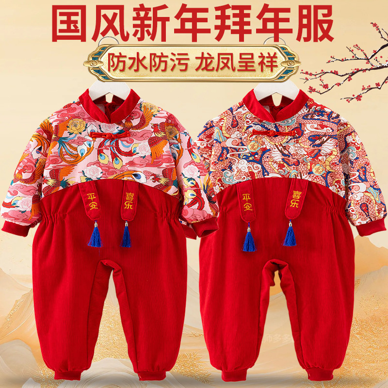 子供の新年の服のカバーの服の男女の赤ちゃんの唐は服のコーデュロイの防水の赤い新年の正月の中国風を着ます。