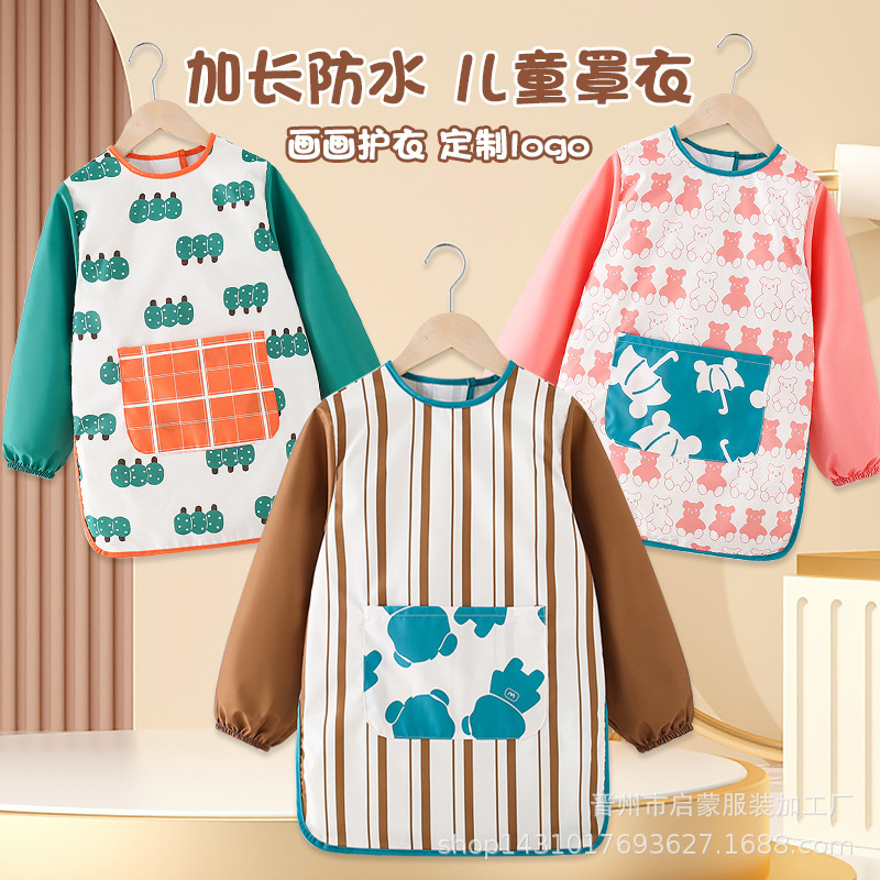 子供用エプロン長袖防水絵衣幼稚園小学生書道絵画保護服汚れ防止反着カバー