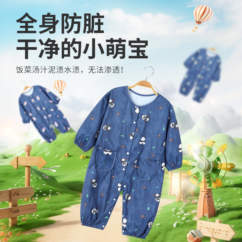 国風の赤ちゃんの子供のカバーの服の爬行服の赤ちゃんの一体の保護服の子供の連体は汚れを防ぐことができます。