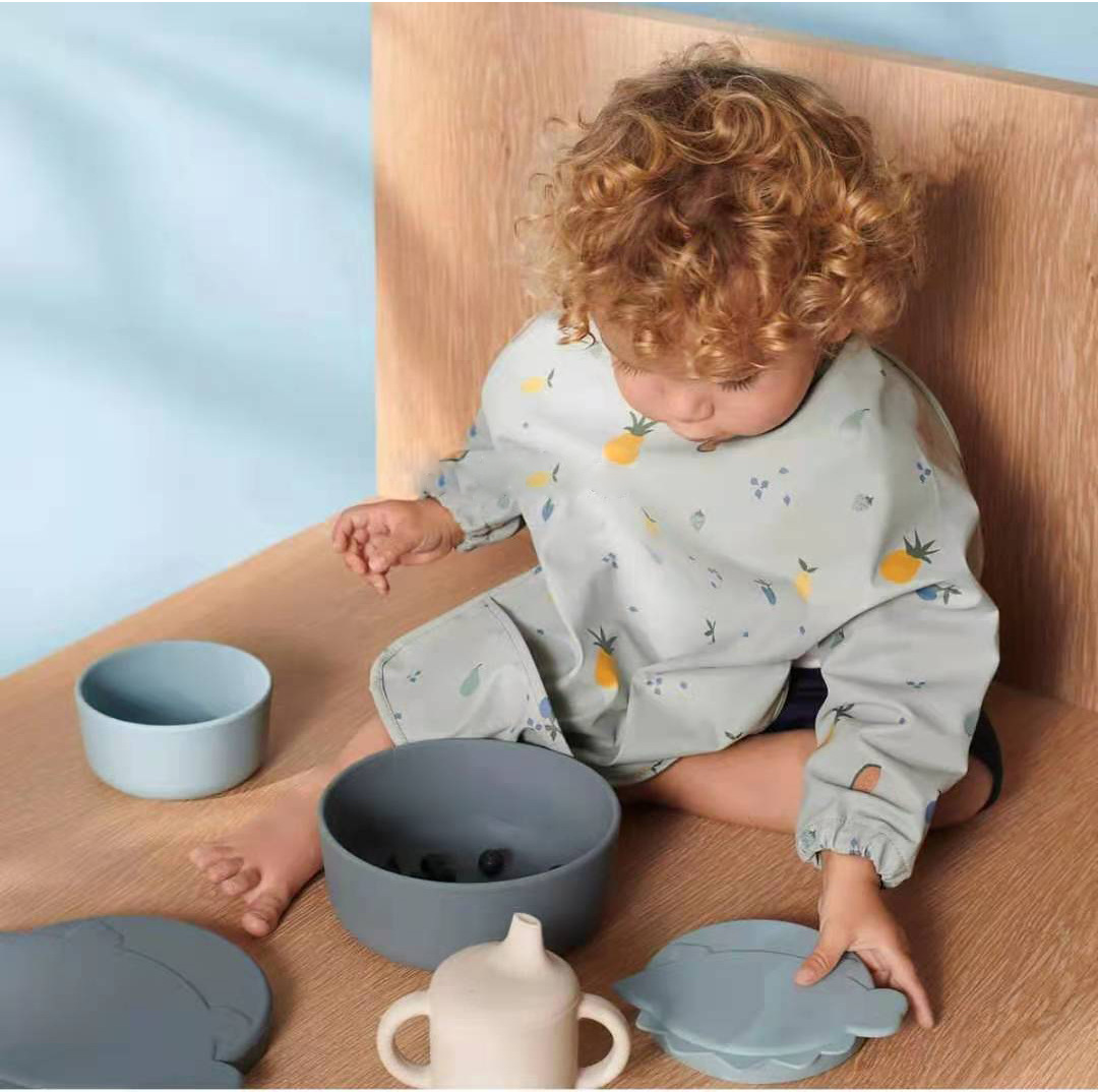デンマークの反服装児童防水食事服汚れ防止給餌服超ソフトpu防水口ベビー補助フード