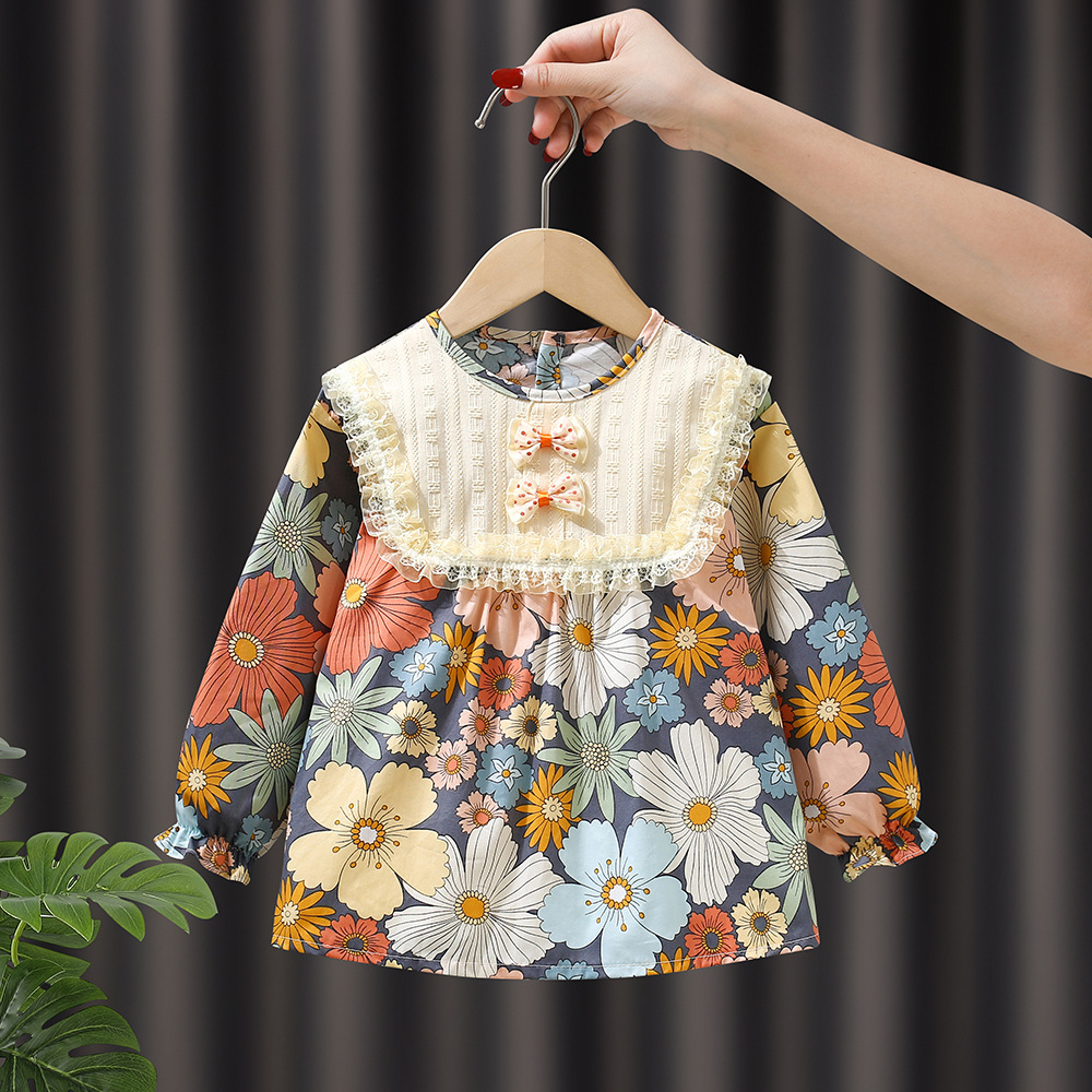 女の子の韓国の長袖の花の上着の赤ちゃんのカバーの服は子供の春秋のタイプのエプロンの2024新型を着ます。