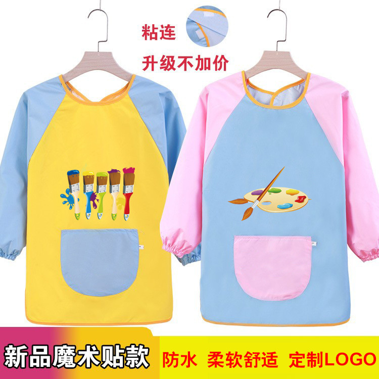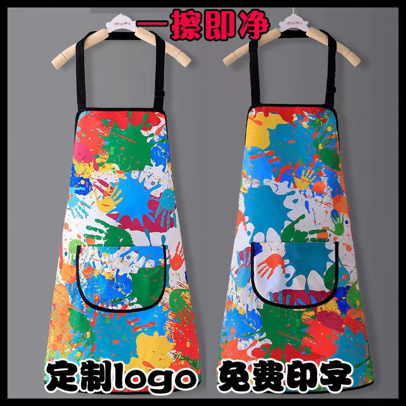 子供防水汚れ防止絵エプロン美術生専用男女カバー幼稚園ロゴ印字夏薄手