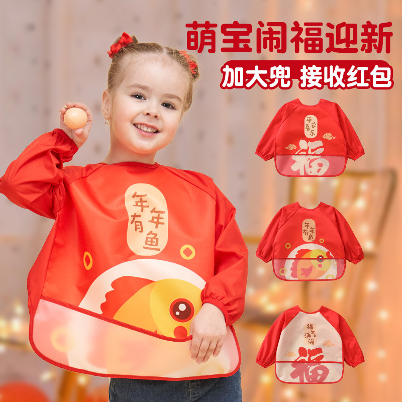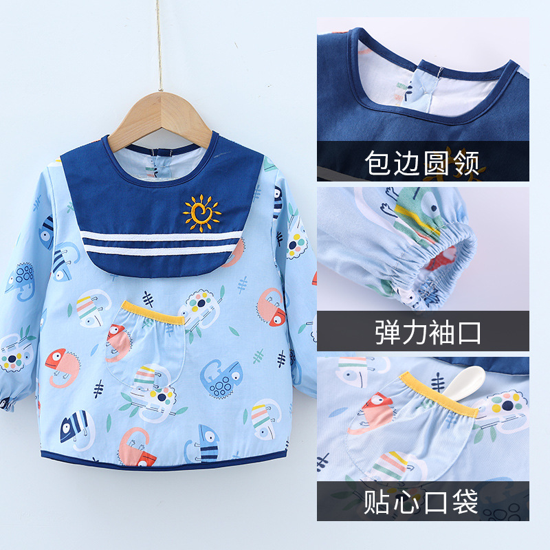 子供用カバー赤ちゃんの食事服長袖タイプのご飯袋子供用エプロンの逆着防水汚れ防止ポケットa純綿