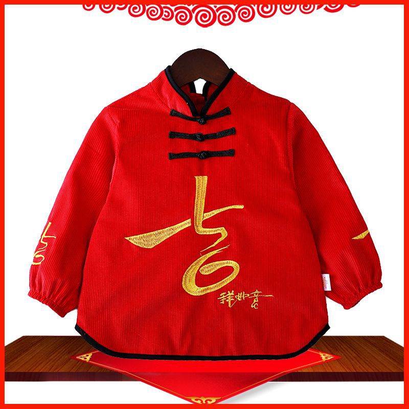 カバー子供防水年越し服コーデュロイ中国風唐装秋冬赤ちゃん男女汚れ防止よだれかけ服