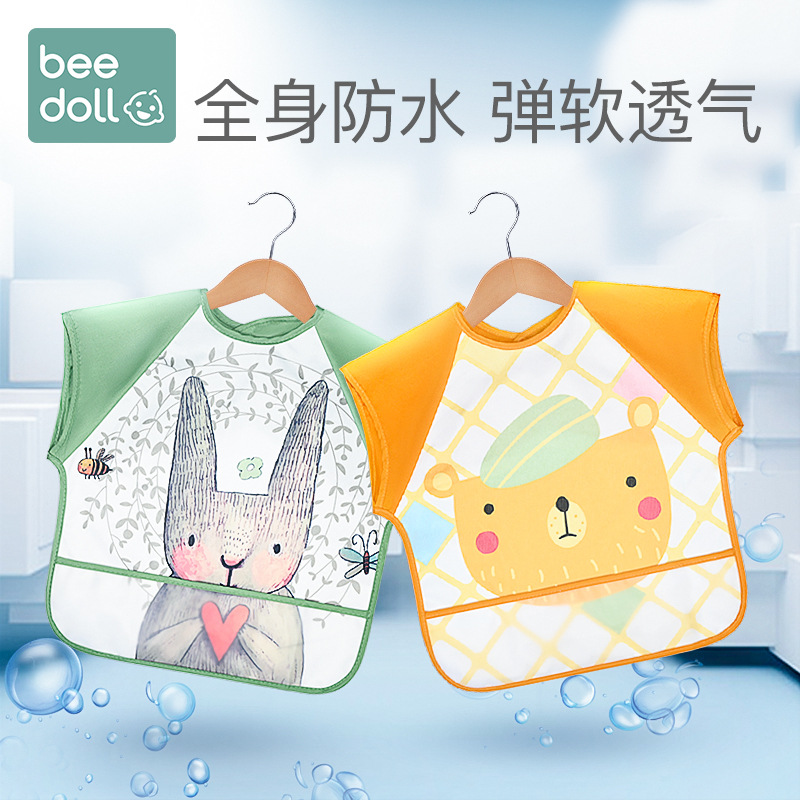 Beedoll子供用カバー防水汚れ防止赤ちゃん食事よだれかけ幼稚園絵逆着エプロン