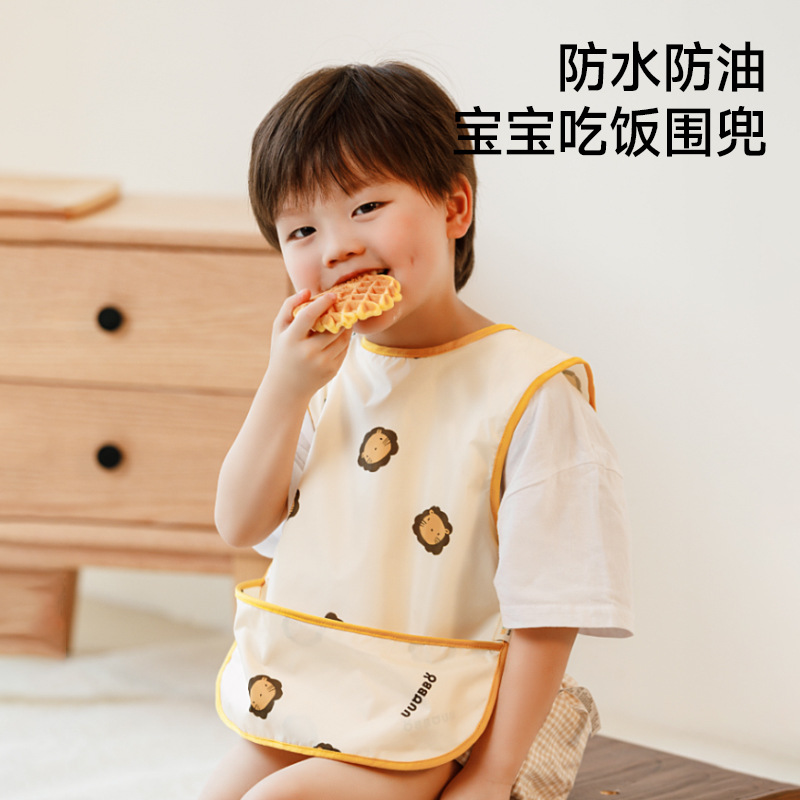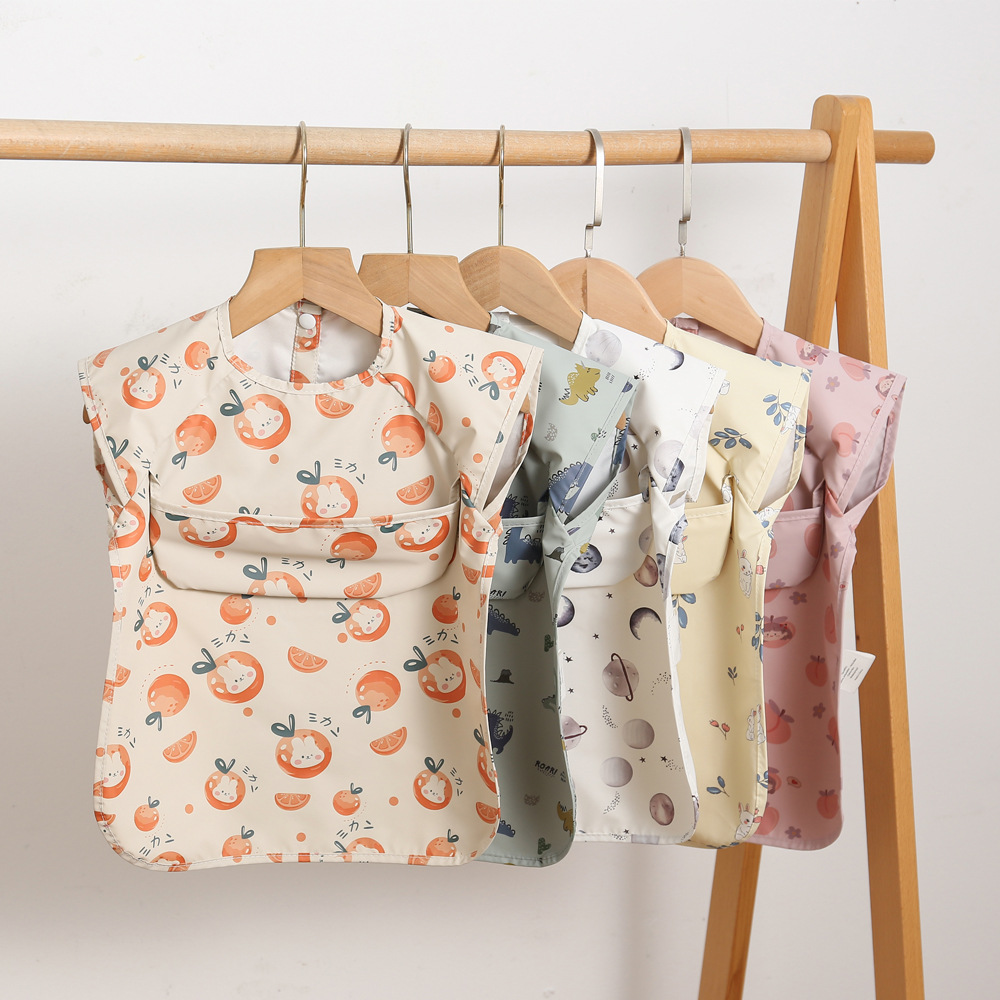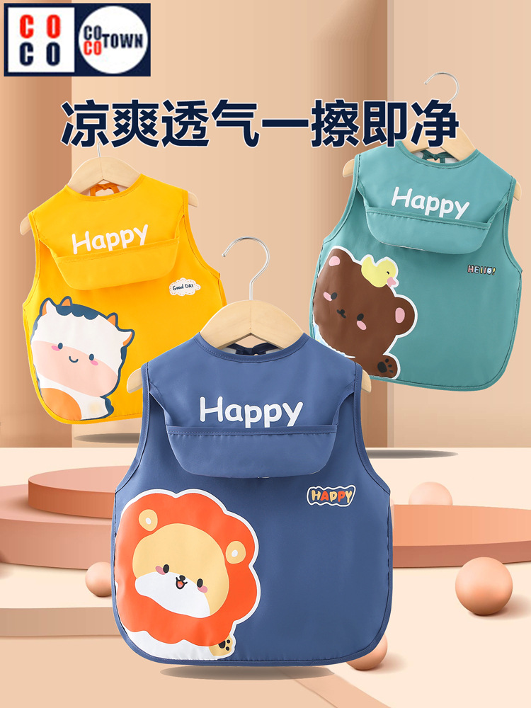 子供用エプロン赤ちゃんの食事服幼稚園の汚れ防止カバー男赤ちゃんの食事よだれかけ防水袖なしの薄いタイプの食事袋