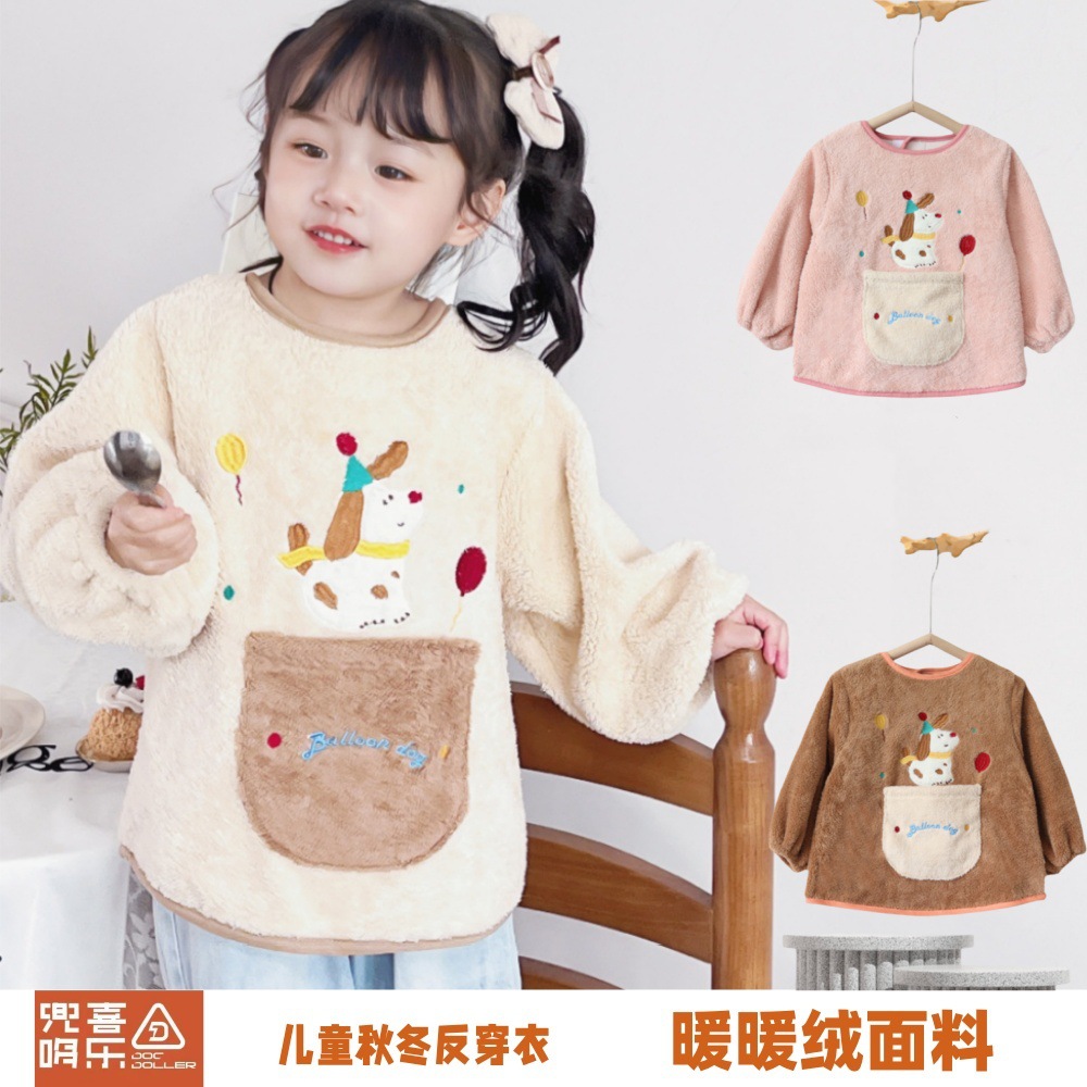 ベビースモック、防水、防汚、漫画風、逆着用、子供用よだれかけ、男の子と女の子、幼児用、秋冬用クリスタルベルベット保護
