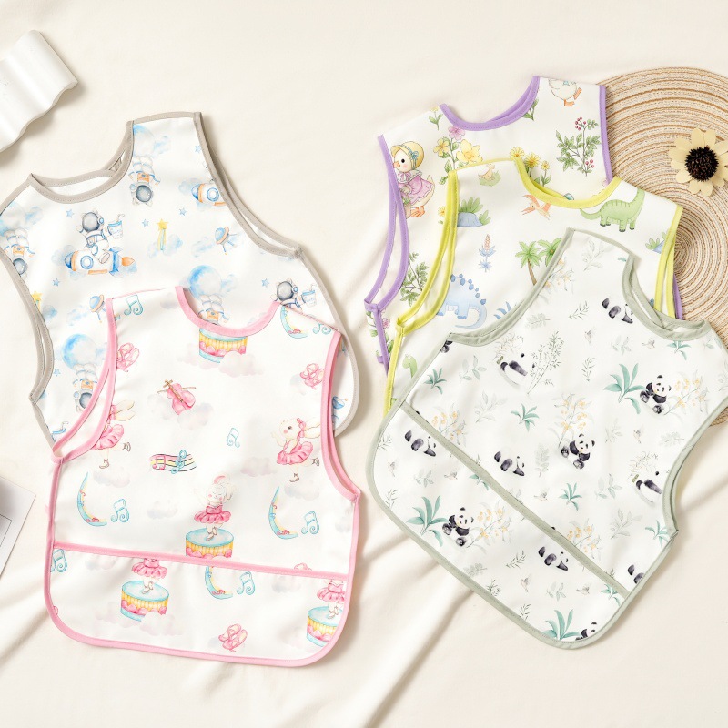 子供用エプロン絵画スモック女の赤ちゃん食べるよだれかけ男の子防水逆着用汚れ幼稚園アート絵画服