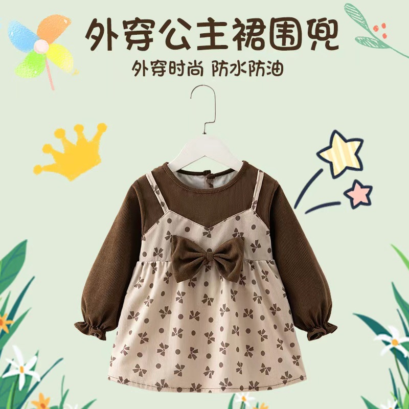 蝶結びお姫様スカート】赤ちゃんカバー子供の食事防水汚れ防止長袖冬の空気は服を着ています。