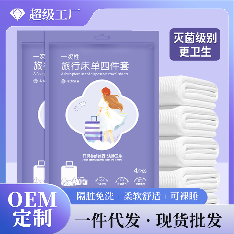 使い捨てシーツカバー枕カバーホテルプリント4点セット旅行ベッド汚れ用品旅行携帯衛生