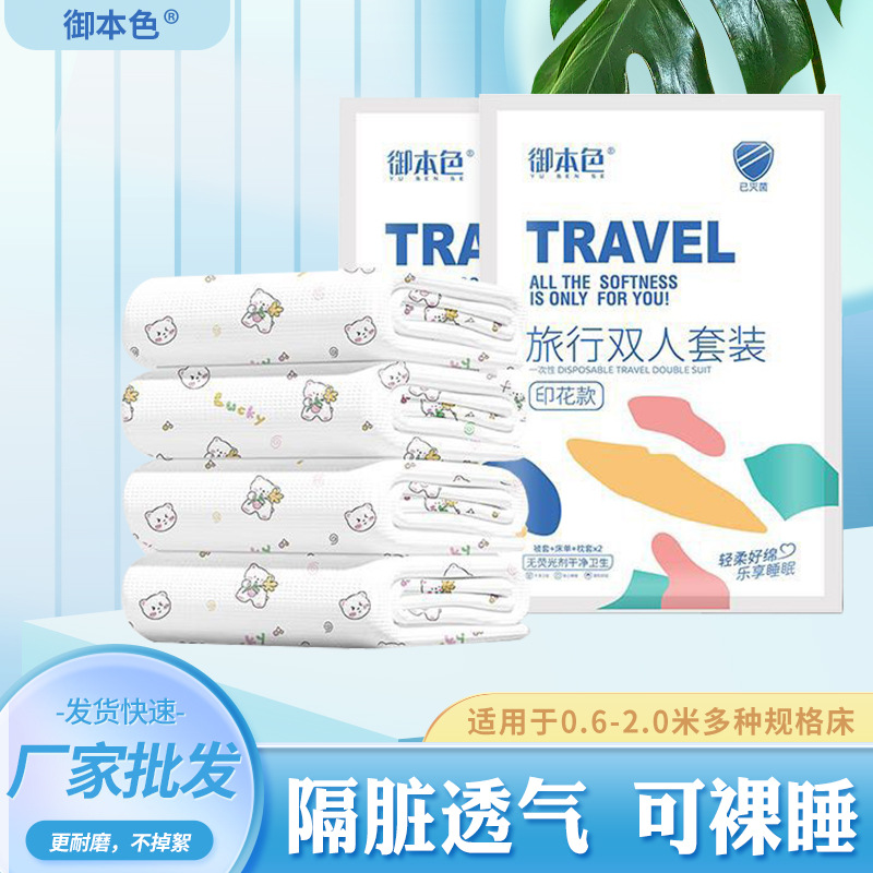 新しいプリント使い捨てベッドシーツ、キルトカバー、枕カバー、ポータブルトラベルダブル4点セットホテル寝具