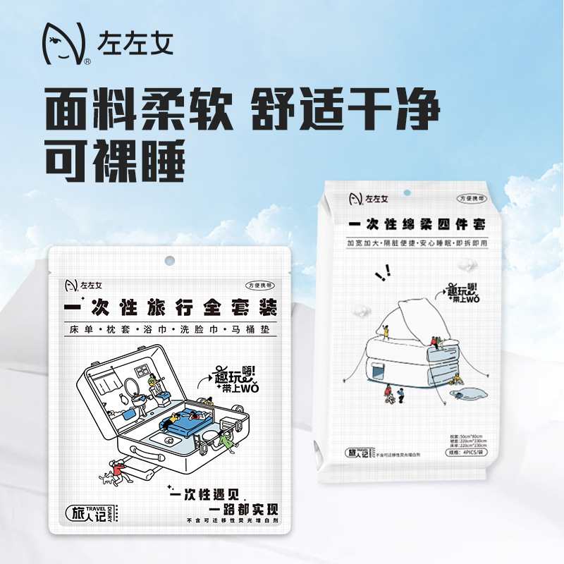 左左女性使い捨て旅行4点セットシーツカバーホテル用品不織布寝具セット卸売り