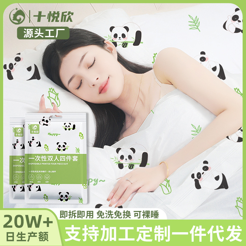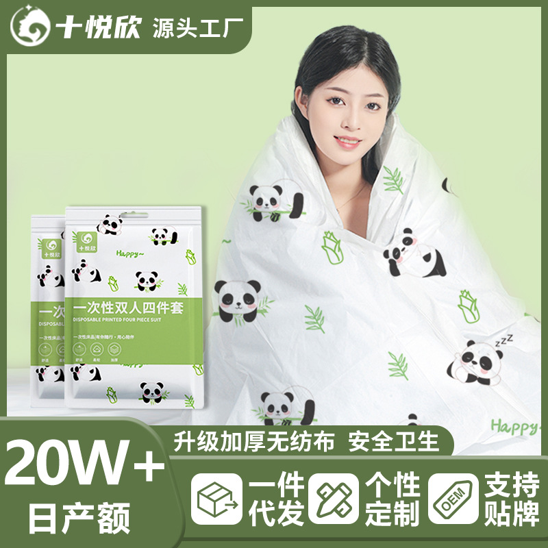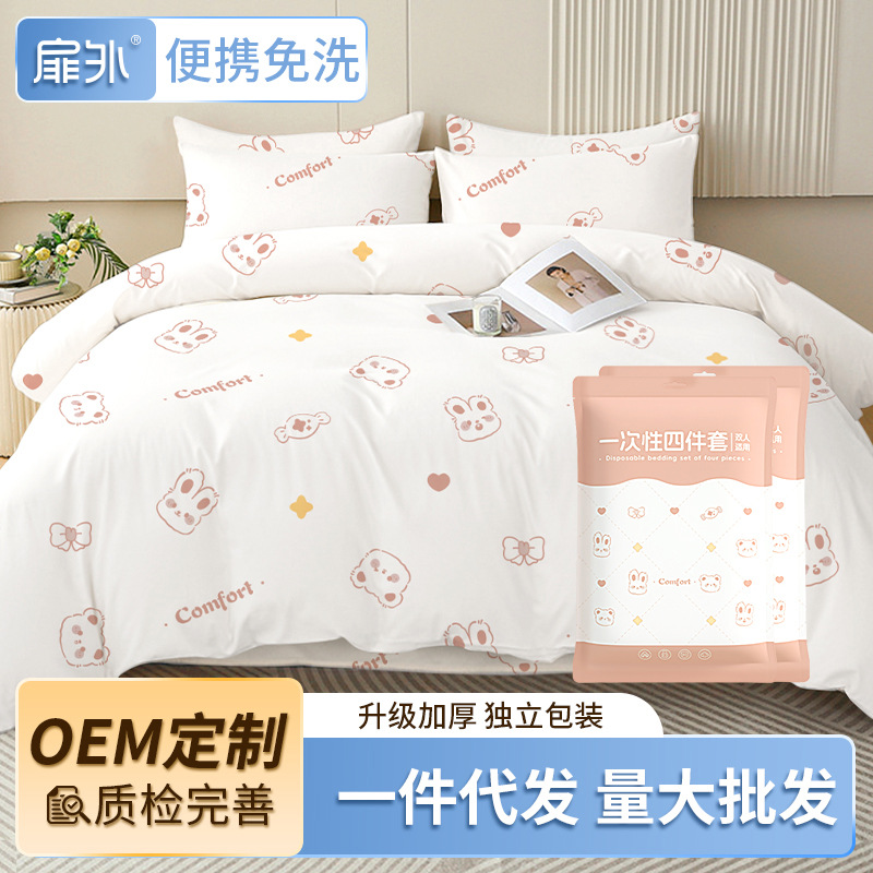 使い捨てベッドシーツ4点セット、掛け布団カバー、枕カバー、旅行用4点セット、ダブル旅行用ホテル4点セット、卸売